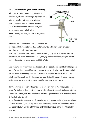 behov for tail rotor thrust – så der skal trædes på venstre pedal. Da hovedrotoren