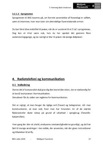 Sprogtesten til BEG baseres på, om korrekt anvendelse af fraseologi er udført,