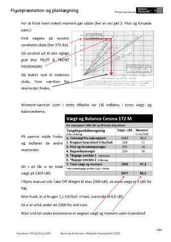 Med små tal under kolonnerne er angivet vægt og moment uden brændstof.