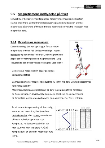 magnetiske påvirkning af flyet vil trække magnetnålen væk fra retningen mod