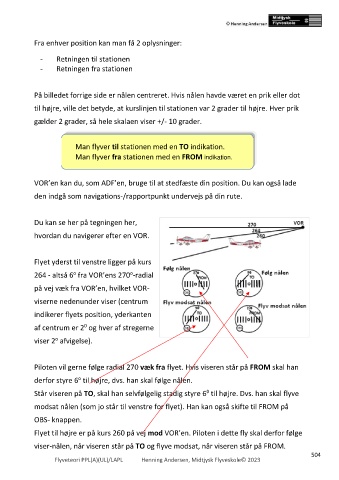 Flyet til højre er på kurs 260 på vej mod VOR’en. Piloten i dette fly skal derfor følge