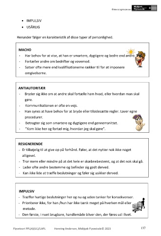 Herunder følger en karakteristik af disse typer af personlighed.