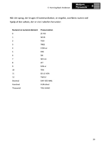 Når det sprog, der bruges til kommunikation, er engelsk, overføres numre ved
