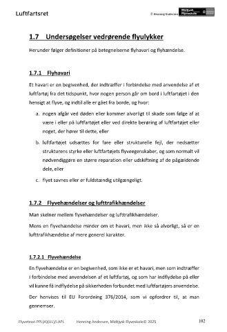 1.7 Undersøgelser vedrørende flyulykker