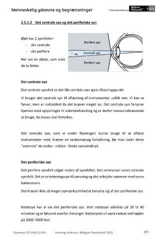 Vi bruger det centrale syn til aflæsning af instrumenter, udkik mm. Vi kan se