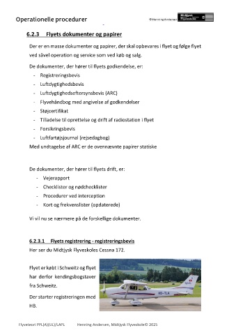 De dokumenter, der hører til flyets drift, er: