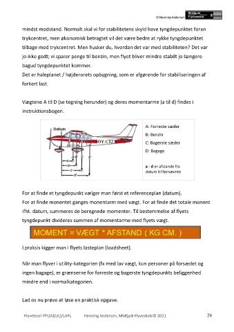 ifht. datum, summeres de beregnede momenter. Til bestemmelse af flyets