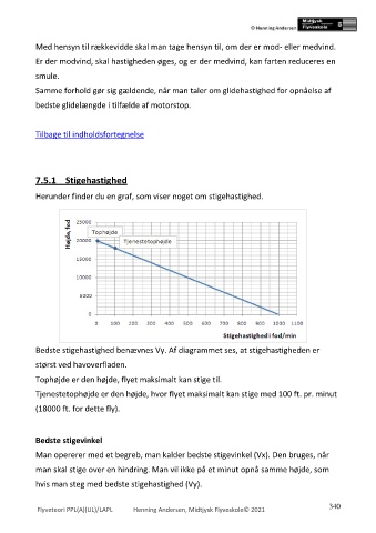 Bedste stigehastighed benævnes Vy. Af diagrammet ses, at stigehastigheden er