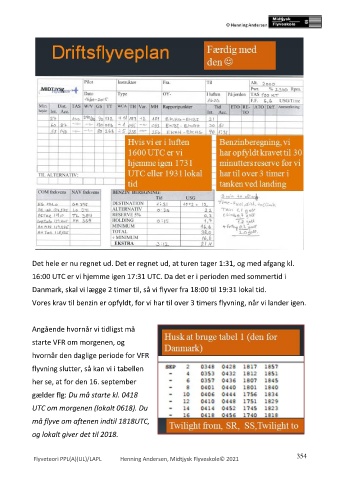 flyvning slutter, så kan vi i tabellen
