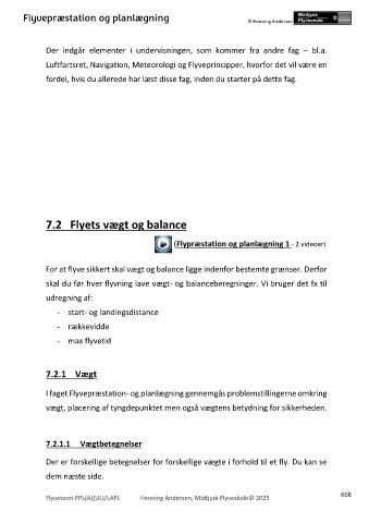 7.2 Flyets vægt og balance