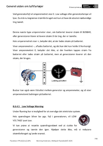 Ved generatorfejl vil amperemetret vise 0. Low voltage eller generatorlampe vil