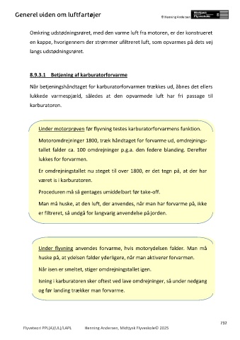 Under flyvning anvendes forvarme, hvis motorydelsen falder. Man må