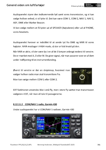 Under audiopanelet har vi COM/NAV 1 radioen, Garmin 430