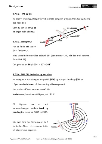 Nu mangler vi kun at regne magnetisk (MH) og kompas headings (CH) ud.