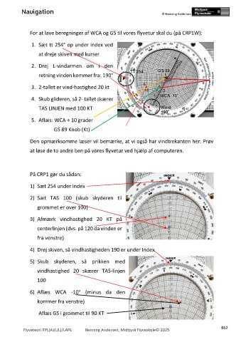 For at lave beregninger af WCA og GS til vores flyvetur skal du (på CRP1W):