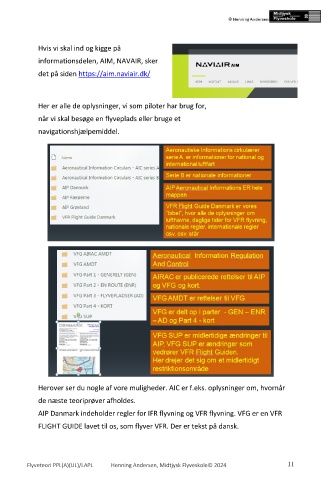 AIP Danmark indeholder regler for IFR flyvning og VFR flyvning. VFG er en VFR