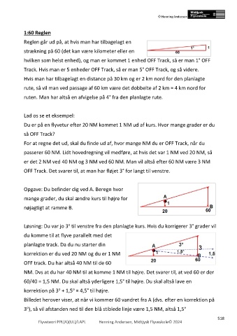 60/40 = 1,5 NM. Du skal altså yderligere 1,5° til højre. Du skal altså lave en