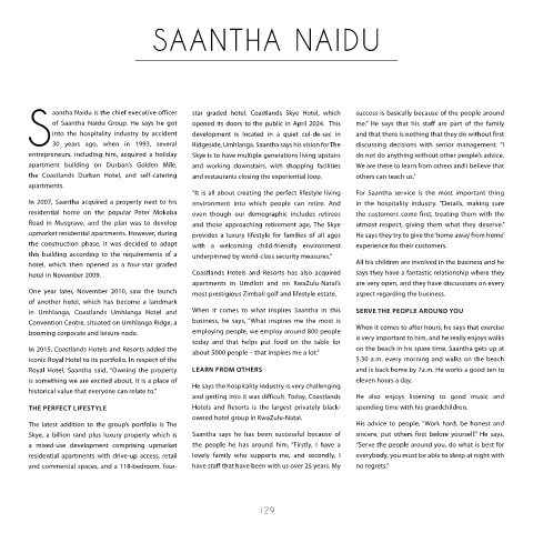 aantha Naidu is the chief executive officer star graded hotel, Coastlands Skye Hotel, which success is basically because of the people around