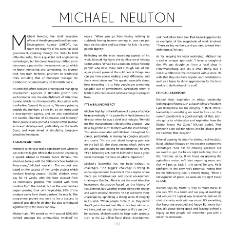 Michael’s career also took a significant turn when he around you and looking for opportunities,” he says. advantages. “KZN has an amazing coastline but