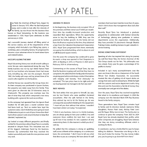 family business was run by Jay’s father Raman Patel Commenting on the success of Royal Tyres, Jay says