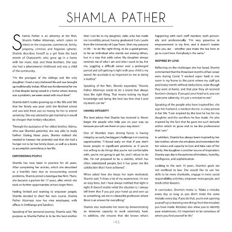 After completing her articles, which she described satisfaction that I have achieved.” Looking to the next 10 years, Shamla’s goals are