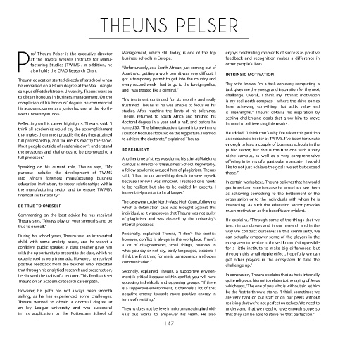 rof Theuns Pelser is the executive director Management, which still today, is one of the top enjoys celebrating moments of success as positive