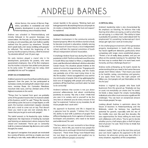Andrew  was  schooled  in  Pietermaritzburg  and   NAVIGATING CHALLENGES                        are not saying, is a critical skill. “The ability to listen