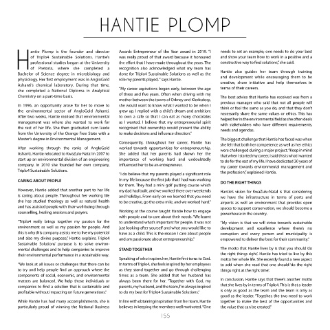 their environmental performance in a sustainable way. the right things right’. Hantie has tried to live by this