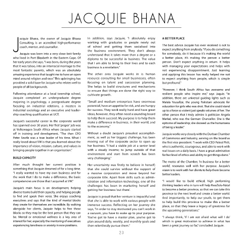 J    acquie Bhana, the owner of Jacquie Bhana    In addition, says Jacquie,  “I absolutely enjoy   A BETTER PLACE