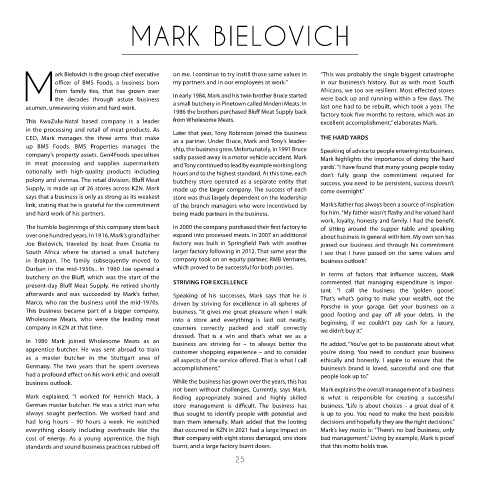 This KwaZulu-Natal based company is a leader    from Wholesome Meats.                           excellent accomplishment,” elaborates Mark.