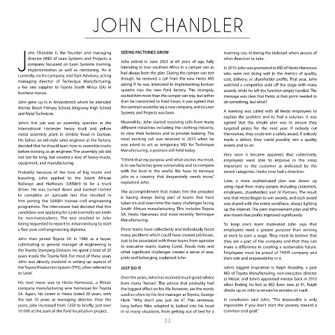 John then joined Toyota SA in 1980 as a buyer, Just to be associated with these teams from operator they are a part of the company and that they can