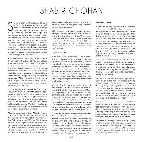 time. This period in the 1990s saw Shabir honing the plans. “It’s one thing to have a strategy; it’s For Shabir, leadership is about leaving a legacy