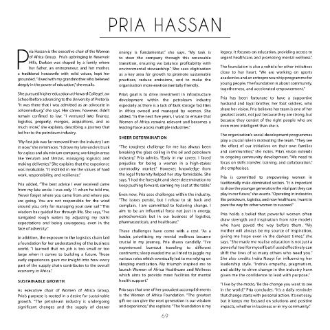 School before advancing to the University of Pretoria. development within the petroleum industry Pria has been fortunate to have a supportive