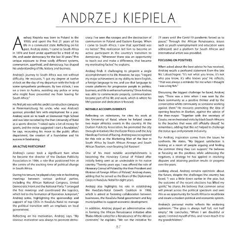 in Pietermaritzburg; his uncle, who was Andrzej’s NOTABLE ACCOMPLISHMENTS against them.” He recounts promoting the idea of