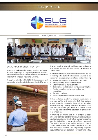 Through its subsidiary (SLCNG), SLG compresses and Advise on compliance to the SANS gas codes