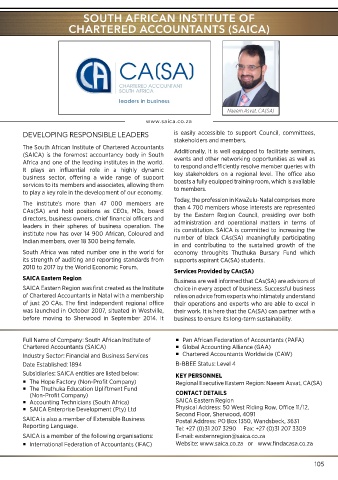 was launched in October 2007, situated in Westville, their work. It is here that the CA(SA) can partner with a