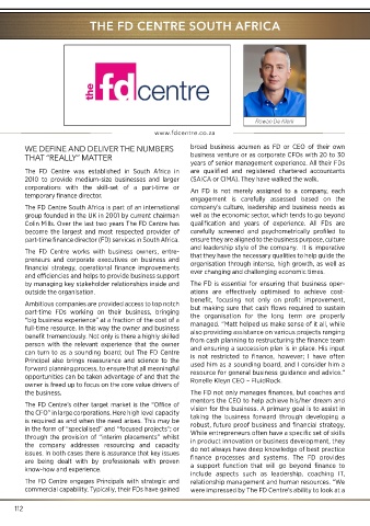 The FD Centre was established in South Africa in are qualified and registered chartered accountants