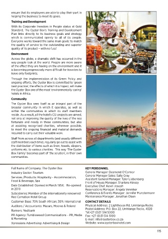 Full Name of Company: The Oyster Box KEY PERSONNEL