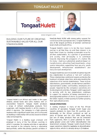 Tongaat Hulett is an African agri leader in the sugar, the SADC regions, in their journey to further growing