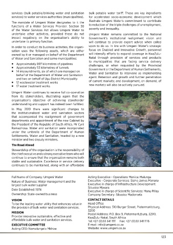 Acting CEO: Nomalungelo Mkhize Website: www.umgeni.co.za