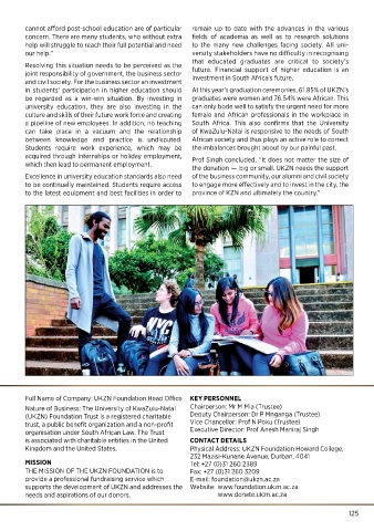 supports the development of UKZN and addresses the Website: www.foundation.ukzn.ac.za