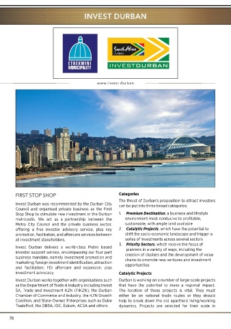 Invest Durban was recommended by the Durban City can be put into three broad categories: