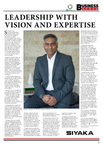 with precision.” people behind them. “My Beyond Siyaka, Rajesh now leadership development are not In conclusion Rajesh says