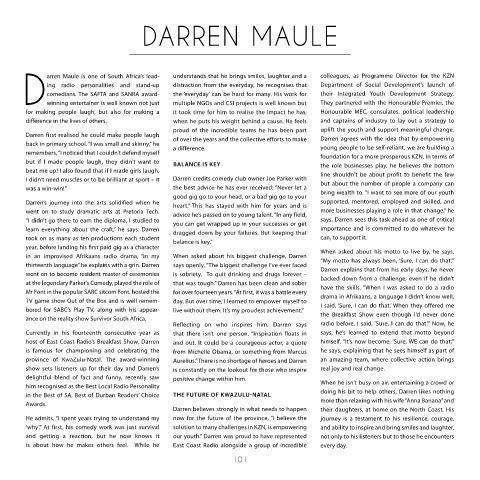 arren Maule is one of South Africa’s lead- understands that he brings smiles, laughter and a colleagues, as Programme Director for the KZN