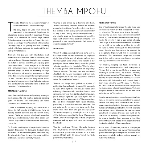 For Themba, working in the hospitality industry is a Themba continues, “Nelson Mandela inspires At the heart of Themba’s journey is a simple yet