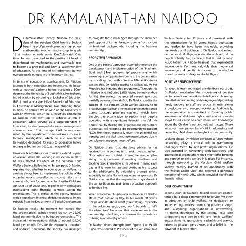 r Kamalanathan (Kenny) Naidoo, the Presi- to navigate these challenges through the influence Welfare Society for 23 years and remained with