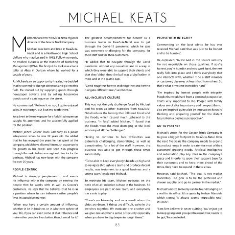 M ichael Keats is the KwaZulu-Natal regional The greatest accomplishment for himself as a PEOPLE WITH INTEGRITY