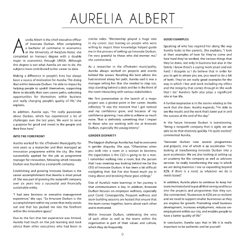 Aurelia worked for the eThekwini Municipality for The biggest challenge Aurelia has had to overcome “Innovate Durban runs several programmes