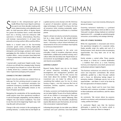 ethic. As chief executive officer of Siyaka, Rajesh   efficient packaging that contributes to a healthier   responsibility. “In passing on what we refer to as the