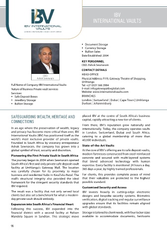 Full Name of Company: IBV International Vaults Tel: +27 (0)31 566 3984